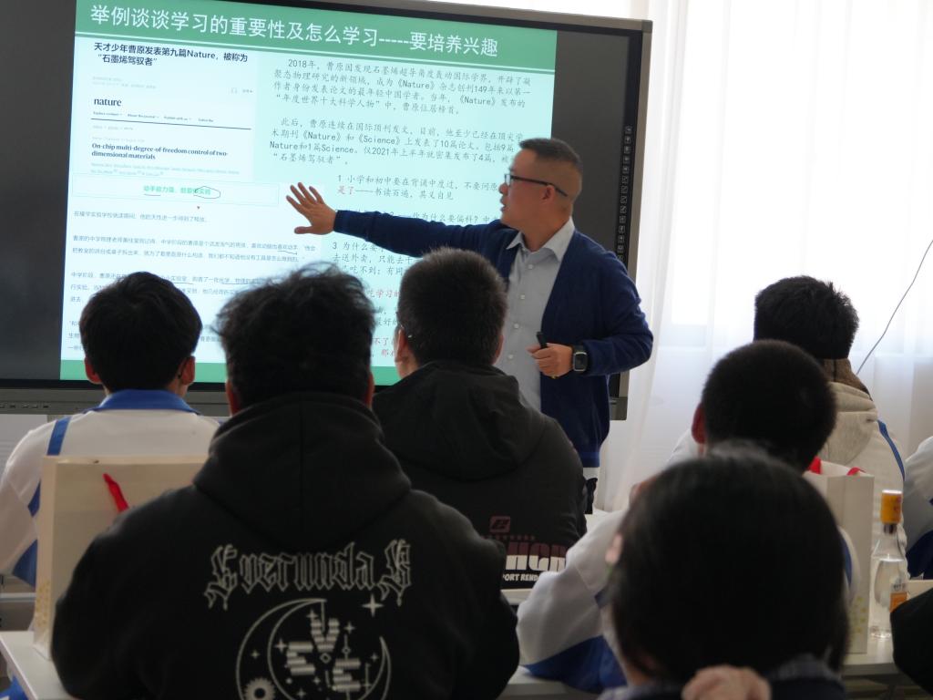 以蜂類標(biāo)本背后的生存法則為喻,郭軍老師分享了自己的逆襲故事:小學(xué)時曾因貪玩留級,初中因紅眼病視力驟降錯過補課,高中成績中等,高考僅考上二本學(xué)校的“冷門專業(yè)”——蜂學(xué),考研兩次才上岸,博士階段逆襲拿下第一名。現(xiàn)如今,郭軍老師在自身專業(yè)蜂學(xué)研究與個人特長篆刻藝術(shù)領(lǐng)域都取得了不菲的成績。“就像我們剛才看到的蜜蜂,想要吃到蜜,都要主動學(xué)習(xí)、反復(fù)試錯,你們想要的未來,怎么可能不勞而獲?”蜂學(xué)專業(yè)雖“冷門”,但經(jīng)多年深耕,郭軍老師在腸道菌群與蜜蜂健康、熊蜂授粉技術(shù)應(yīng)用等方面的多項研究成果陸續(xù)發(fā)表在國際知名期刊上。他告訴學(xué)子:“人生是場馬拉松,現(xiàn)在的成績不代表未來,就像蓋房子打地基,基礎(chǔ)穩(wěn)了才能建得高;專業(yè)沒有好壞,興趣不分冷熱,堅持做到極致就是最好。”
